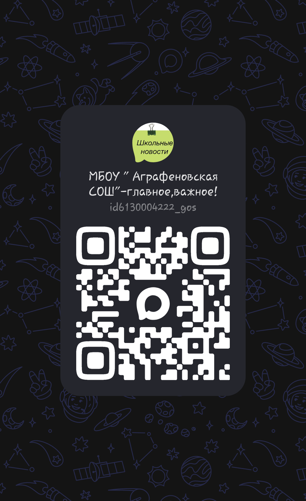 Здесь мы будем делиться интересными новостями и событиями из нашей школьной жизни! А также информировать вас о самом интересном и полезном в образовательном пространстве! Присоединяйтесь ,переходя по ссылке https://max.ru/id6130004222_gos