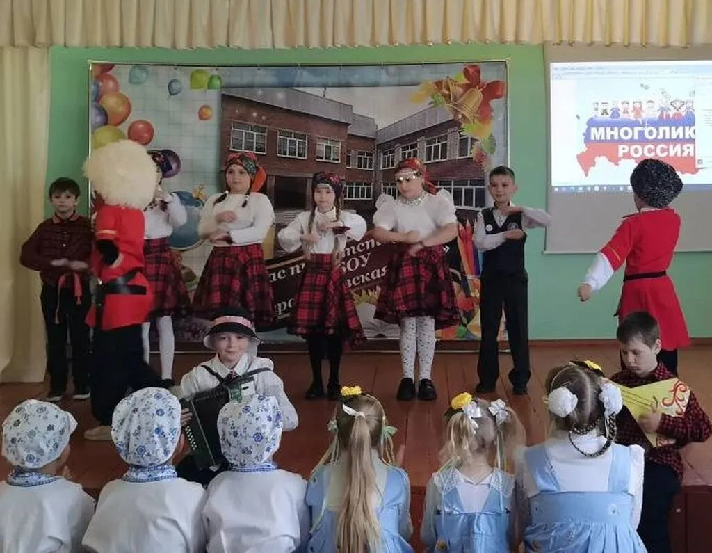 На один день школа наполнилась яркими красками национальных костюмов, зазвучали песни и танцы разных народов, а ароматы национальных блюд просто сводили с ума! Ученики с энтузиазмом представили богатство и красоту различных народов России. Звучали зажигательные танцы, трогательные песни, звучала речь на разных языках, а столы ломились от угощений, приготовленных по старинным рецептам.